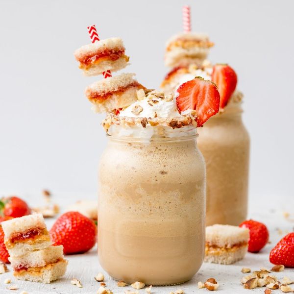 PB&J memories — what’s your favorite? Mom making an after-school snack? You concocting a post-drinking-session hangover cure? Or a picnic in the park with a double-decker PB&J? Well today, we’re consuming our peanut butter and jelly grown-up style with a PB&J frappuccino, spiked with a caffeine hit and topped with whipped cream, nuts, and a garnish of mini sandwiches. That’s Saturday brunch sorted then.
