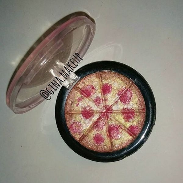 When rainbow highlighter hit the scene, make-up loving folks everywhere freaked out. So much so that the product sold out almost immediately and soon popped up on eBay selling for a whopping $1,200 (although rainbow highlighter originator, Bitter Lace, dealt with that issue). But now we’ve discovered a new highlighter that is just as cool and might be even yummier-lookin’. That’s right: Pizza highlighter.