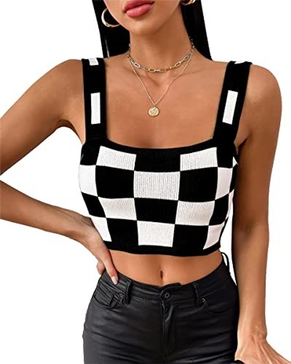 The Imily Bela Crop Top has a black and white checked design that may take some of you back to middle school, the era when it was very popular. The knit design and fabric make it stretchy, comfy and breathable, and its perfect fit and square neck is super sexy.
