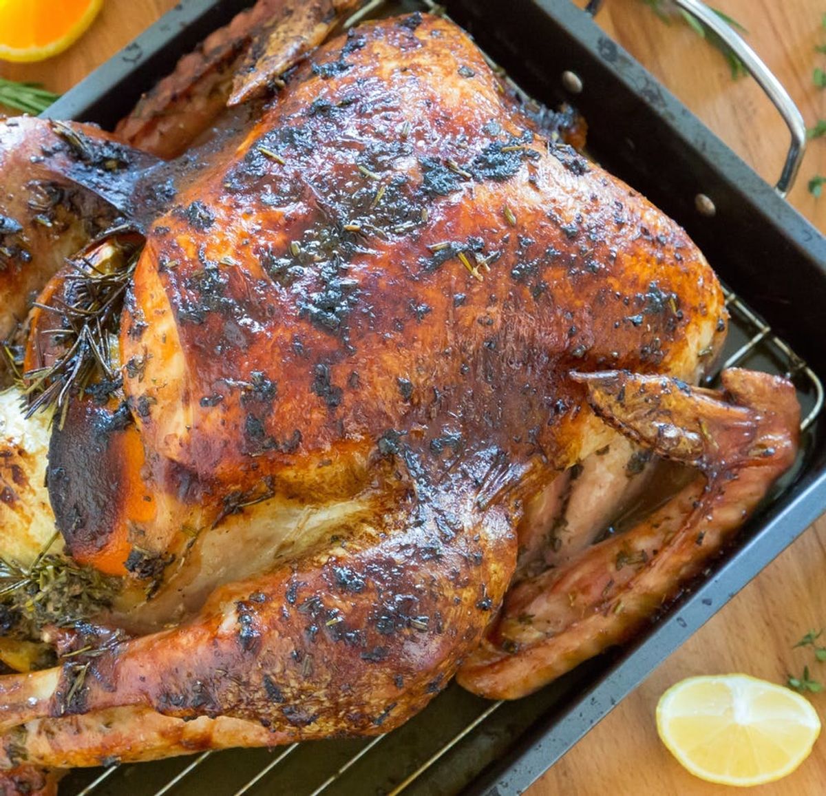Did you take on the responsibility of roasting a whole Thanksgiving turkey for the first time this year? Deep breaths — we’re here to walk you through a delicious, foolproof turkey recipe that yields the most spectacular results to wow your guests. Our perfect combo of olive oil, fresh citrus, herbs, garlic and aromatic vegetables infuses the turkey inside and out. All you need is a roasting pan, rack, brush, baster, meat thermometer and a few simple ingredients to get started! Crispy skin, check. Succulent juicy meat (light and dark), check! Have your home smelling like the holidays, check!