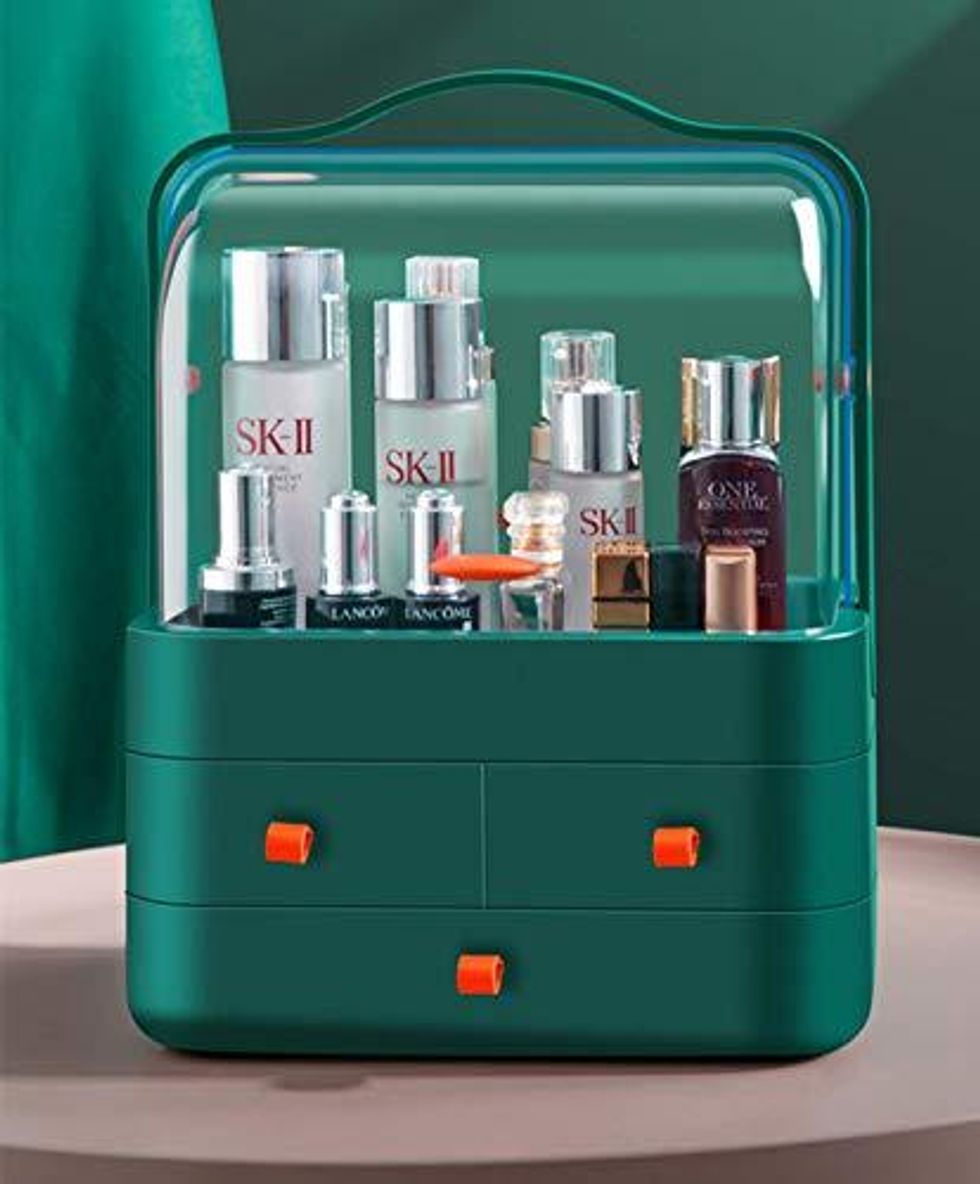 Yes, even the organizational elements can come in bold green with this Cosmetic Storage Organizer. It has a bunch of different compartments to keep all those stray makeup and skincare products in order.