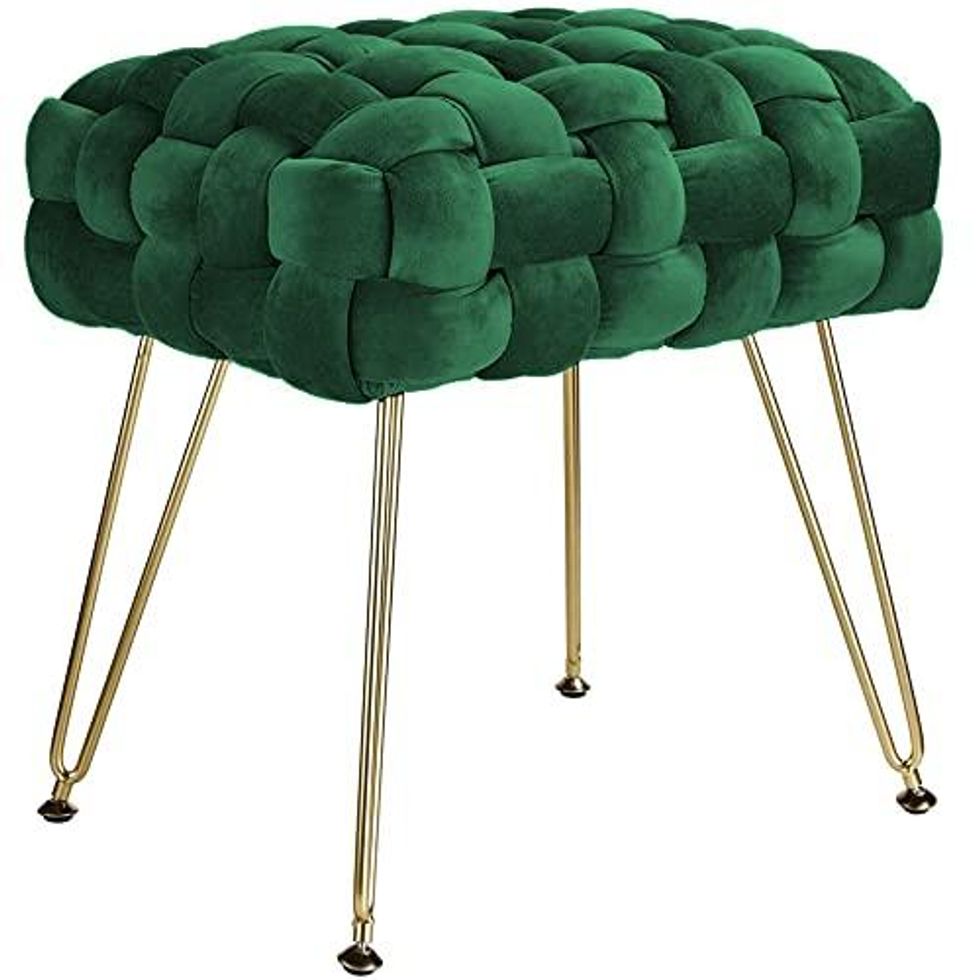 Not only does this Velvet Foot Stool have the soft texture of velvet, but the woven pattern adds that extra bit of interest. Plus that deep green color is to die for!