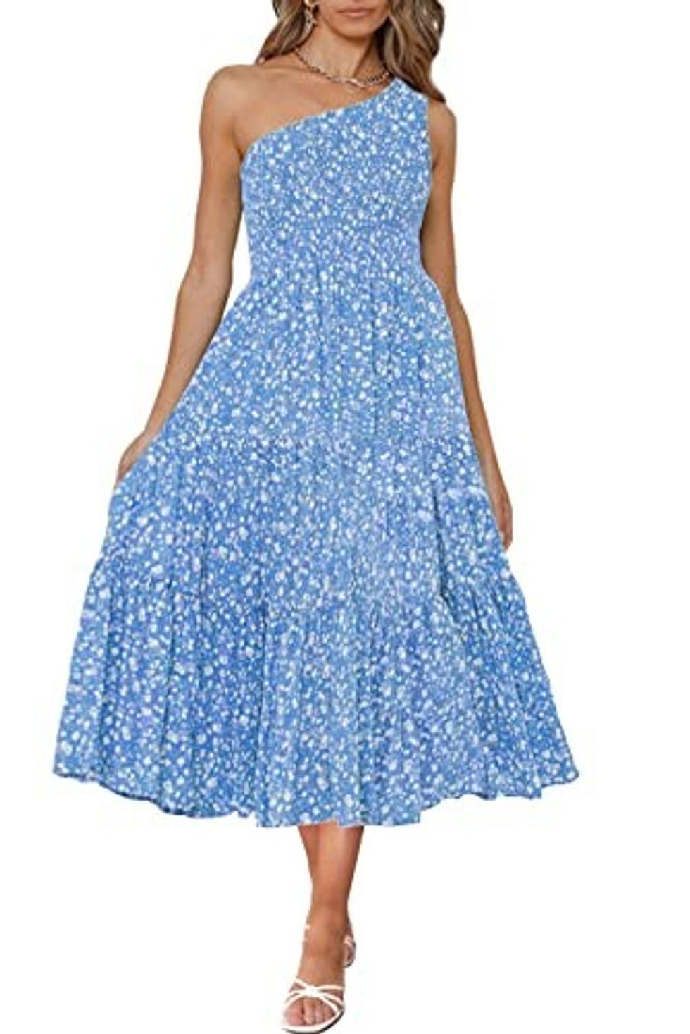 Channel your inner Rachel McAdams from The Notebook and hit the summer fair with this blue blast of a dress. It's stretchy and flowy with a playful off the shoulder detail.