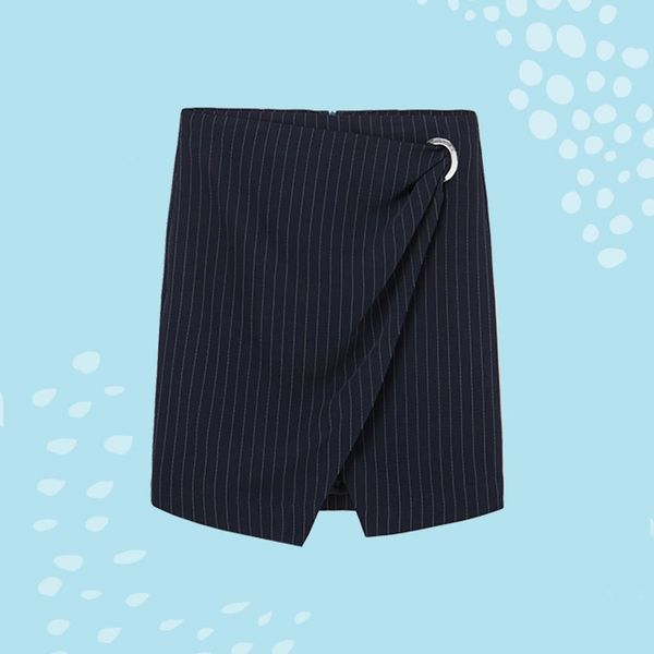 Minis at the office? Heck yes! Keep the high hemline feeling professional by opting for smart pinstripes and styling alongside a sharp dress shirt with sculptural details. A ladylike top handle and lace-up pumps add instant elegance to your leggy look, while statement hoops ensure the getup stays true to your cutting edge style sensibilities.