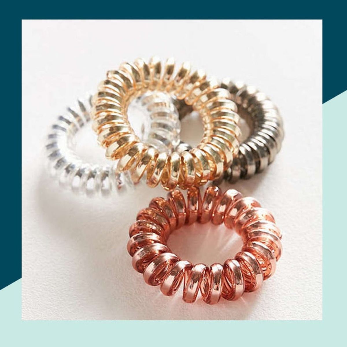 Wondering why old-school phone cords are suddenly a hot hair accessory? Here’s the deal: They’ll hold up even the thickest of ponies and won’t leave a dent in your blowout. Call us in.