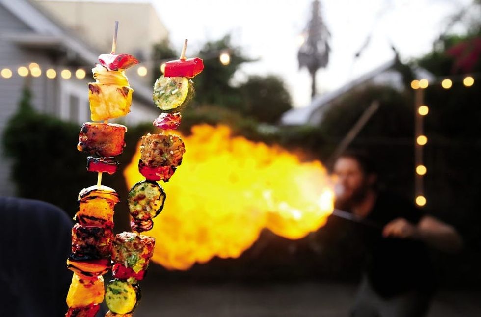 If you’re on the lookout for warm-weather sides from Thug Kitchen, Davis and Holloway shared their favorites: a spiked ice tea, Mexican-style grilled corn, and tempeh kabobs (see recipe below) from their second cookbook, Thug Kitchen Party Grub: For Social Motherf*ckers. Get grilling!