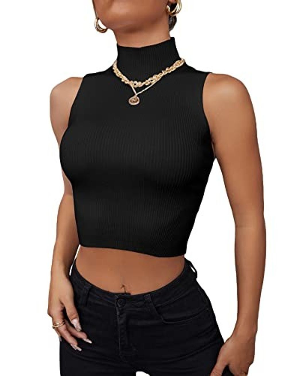The Verdusa crop top melds a flirty crop with a modest high neck, introducing a modern nuance to your fall wardrobe. The ribbed texture introduces a touch of individuality, crafting a silhouette that's both flattering and current. @maleyanichole brings a fall Pinterest outfit to life with this piece in her TikTok video.