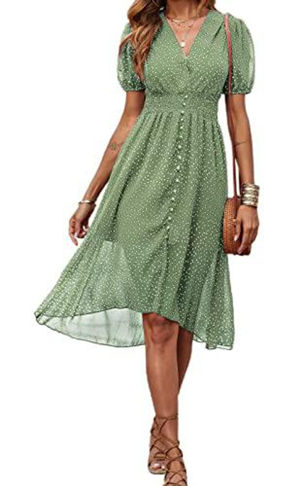 This dress is the perfect blend of casual and classy. If you want to go beach boho chic, you'll need this PRETTYGARDEN Women's Floral Wrap V-Neck Midi Dress. This dress in green goes perfectly with some white or beige accessories.