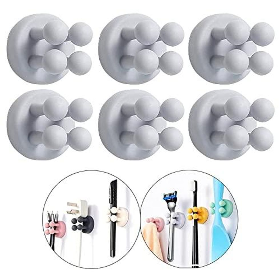 If your bedside table is cluttered like ours, go ahead and put these Self-Adhesive Hooks in your cart. They stick on any flat surface (even in the shower) and the four silicone legs wrap around whatever is placed between them. These are great for razors, jewelry, phone cords, and more!