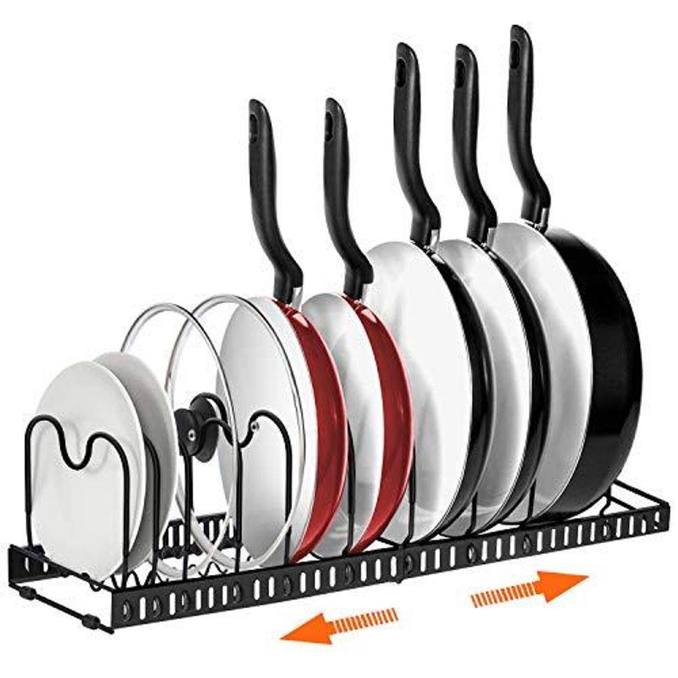Pots and pans are rarely as organized as we want them to be. They're just too big! This Expandable Pot and Pan Holder can fit in larger cabinets, but it's made to sit right on your countertop. The sliding design allows you to reach whatever dish you want without having to stress.