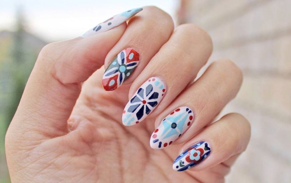 The detailed tile featured on floors, walls, and ceilings across the world is one of our favorite things about international travel. The picture-perfect colors and designs are so beautiful that many nail polish enthusiasts have even begun to recreate their own iterations in the form of tiled nail art. Up ahead, we deep dive into this must-try mani trend with two DIY tutorials, plus loads of inspiration for your own polish.
