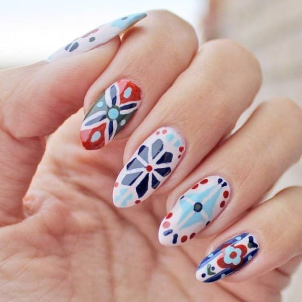 The detailed tile featured on floors, walls, and ceilings across the world is one of our favorite things about international travel. The picture-perfect colors and designs are so beautiful that many nail polish enthusiasts have even begun to recreate their own iterations in the form of tiled nail art. Up ahead, we deep dive into this must-try mani trend with two DIY tutorials, plus loads of inspiration for your own polish.