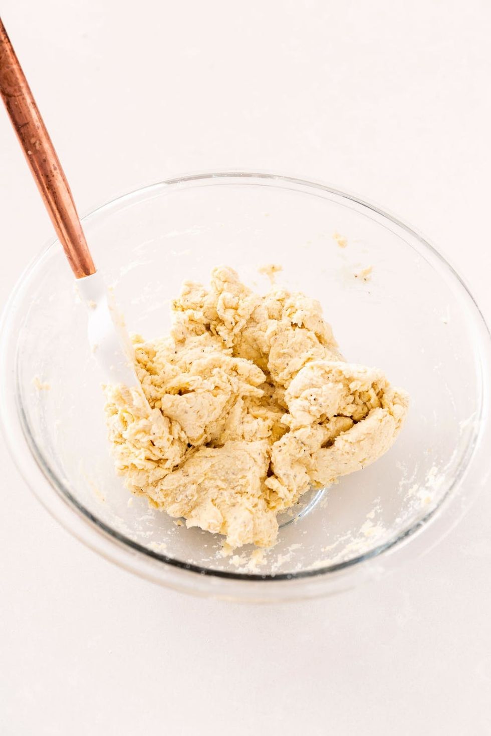 5. Form 8 biscuits. You can roll and form biscuits but Hollingsworth prefers to drop the biscuits. That way there’s a nice crunch to the crust. If you like golden tops, brush them with buttermilk.