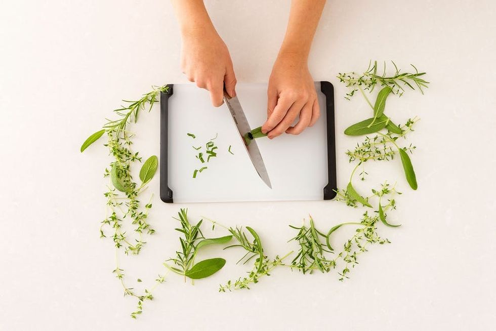 1. Chop herbs with ease. From chives to basil, fresh herbs can be your key to elevating the most basic meal or cocktail. For this one, it’s all about nailing the technique.