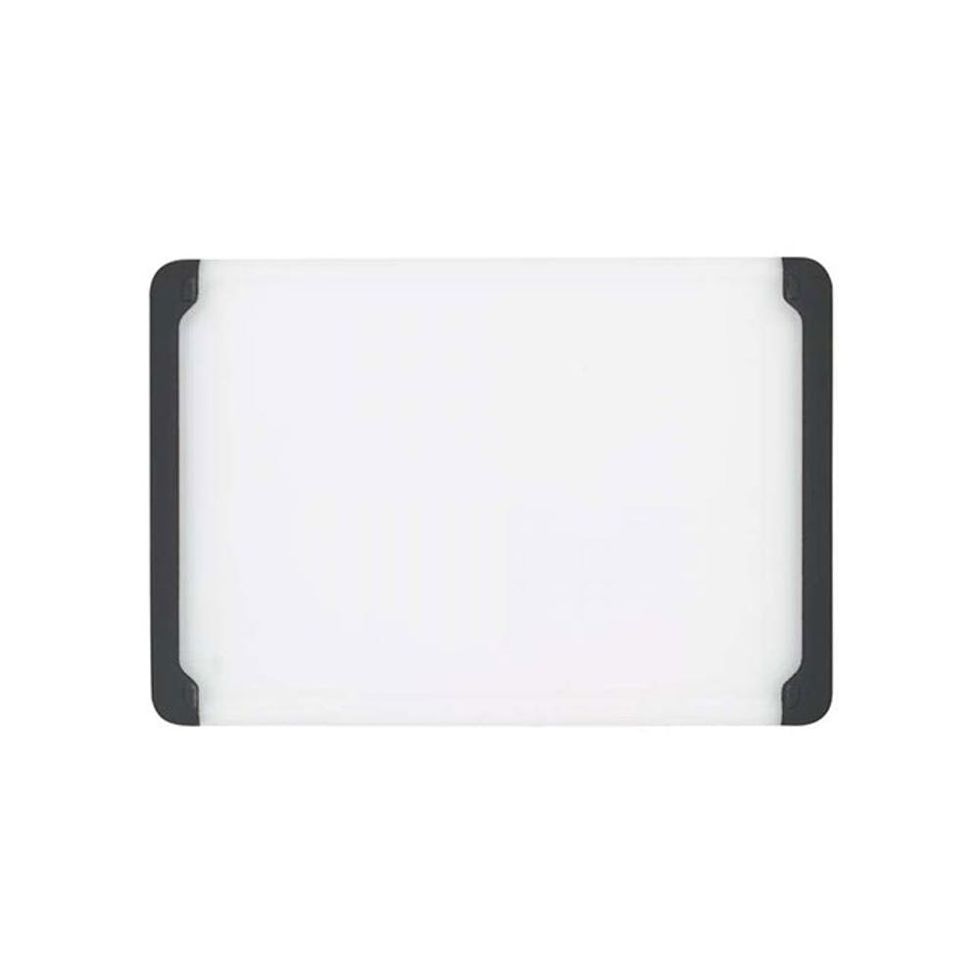 Always start by removing stems and making sure your greens are dry. In order to avoid bruising your herbs, you’ll want to make as few cuts as possible. Stack and roll leaves like a taco. Gather herbs like parsley in a bundle. Once you’re ready to slice, place the tip of your knife down on the cutting board. Move your hands back and forth in a rocking motion without removed the tip from the board. This will be much easier if you opt for something that won’t slip, like the OXO Prep Cutting Board.