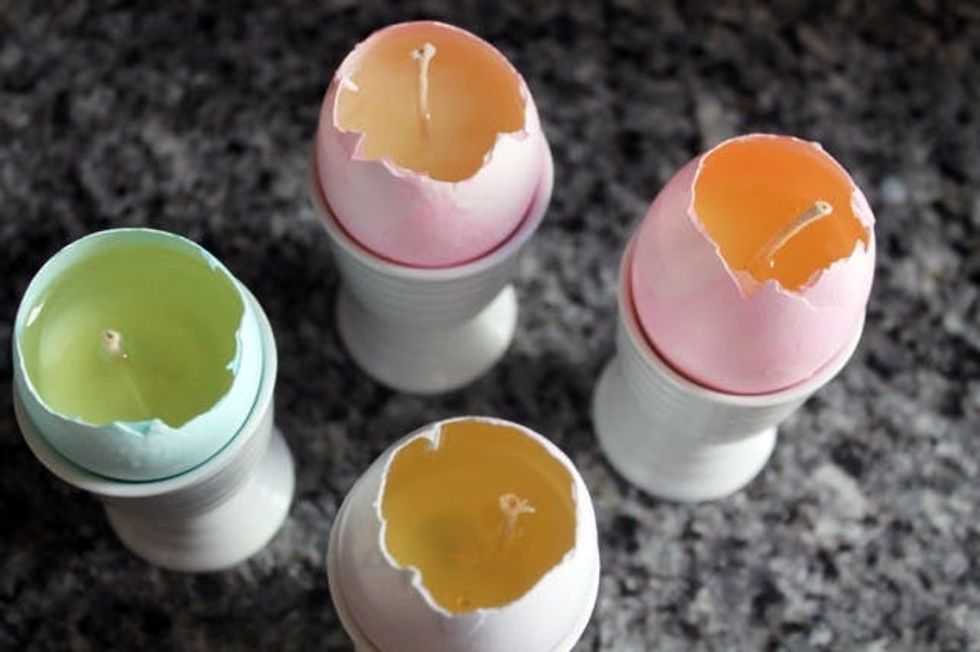 2. Egg Candles: Another genius use of egg shells! It only takes a few simple tools to create your own custom candles and is as simple as pouring wax into each egg and holding the wick in place while it hardens. Feel free to add some scented oil if you are so inclined.