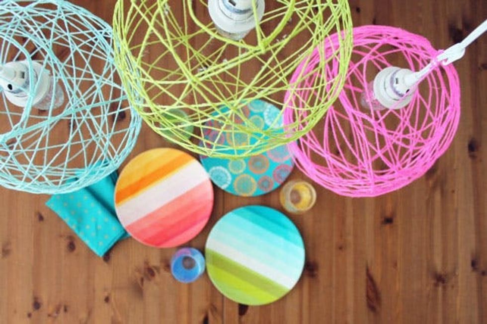 5. Yarn Lanterns: We are pretty in love with these neon lanterns for spring – I especially love the idea of hanging them outside for a spring cocktail party under the stars. We took ours up a notch by adding hanging pendant lights inside each lantern.