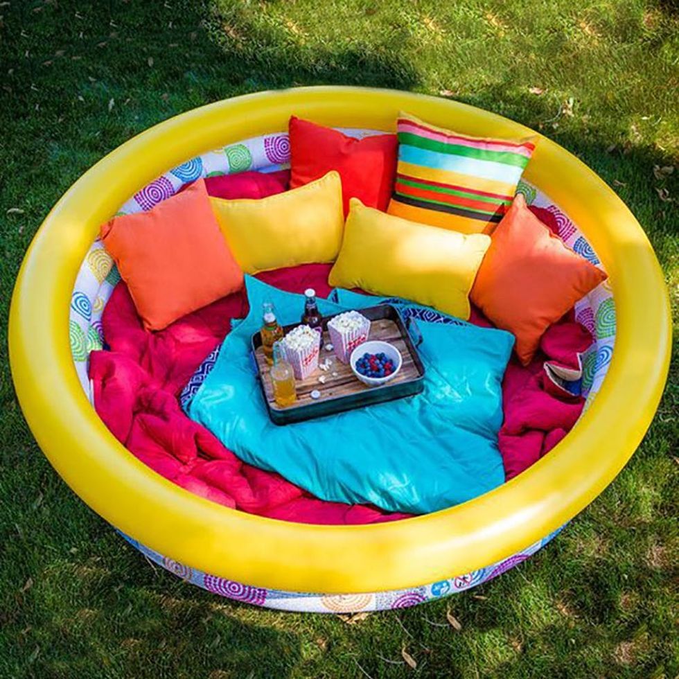 Put that kiddie pool to another use by turning it into a bug-free picnic zone. Use blankets and pillows to create a cozy space to sit back and relax while enjoying your favorite summertime snacks. (via Izze)