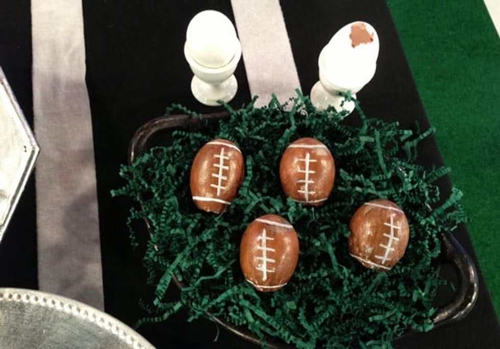 8. Football Cascarones (Confetti Eggs): And last, cascarones! Also known as confetti eggs, these are fun, colorful, and can easily become the most festive footballs you’ve ever seen. Crack ’em on top of each others heads every time a touchdown is scored. Just beware of the clean-up — you’ll most definitely need a vacuum if you’re cracking them indoors.