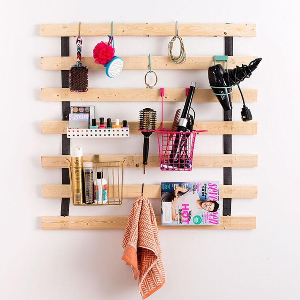 10. IKEA Bed Slats Organization Hack: A dedicated trip to IKEA for some bed slats will give you a genius wall storage option. (via Brit + Co)
