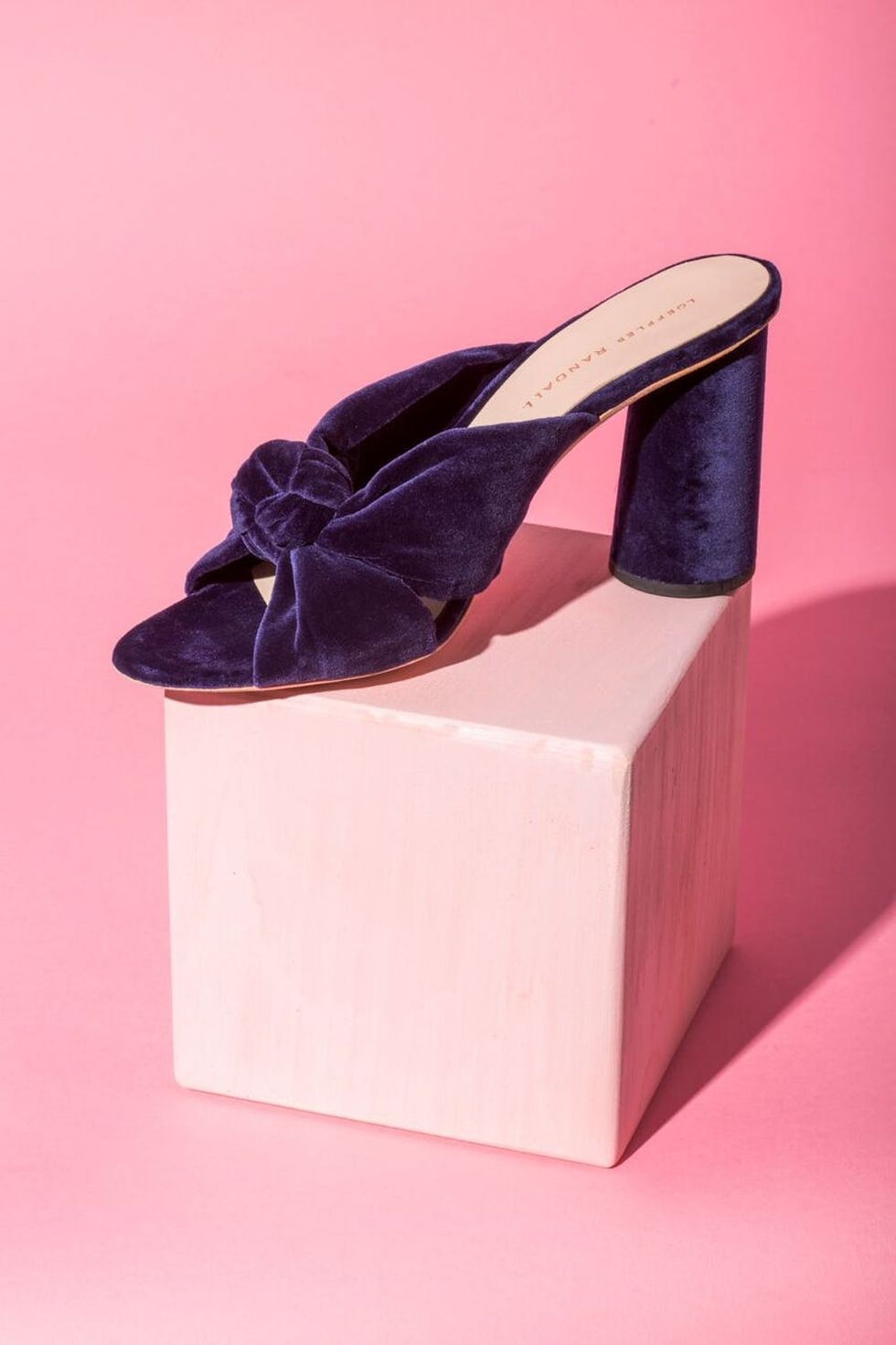 Looking for more drama in your life? Then opt for the Coco High Heel Knot Slide ($395), made with fall’s must-have texture — velvet — knotted to perfection in rich hues of silver, watermelon, rose gold, marigold, and navy. The 3.5-inch cylinder heel will turn heads with every step you take minus the discomfort of towering stilettos. Swap out daytime wedges for this romantic statement shoe and you will be well on your way to an Insta-approved wedding season.