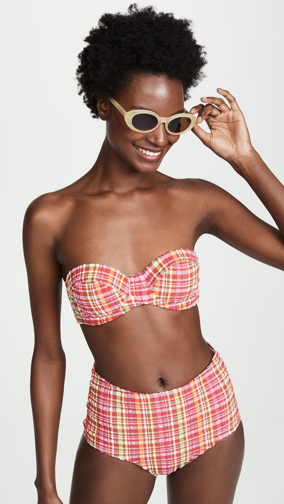 Diane von Furstenberg Constructed Bandeau Top ($168) and High-Waisted Bottoms ($148): Beach blanket Babylon yourself in gingham (as one does) for each and every summer month.