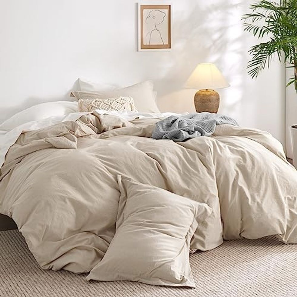 Set up your boho oasis with a natural, minimalist backdrop. Indulge in the softness of a queen cotton duvet cover set, which offers a breathable and comfortable sleeping experience, combining effortless care with a touch of understated elegance.