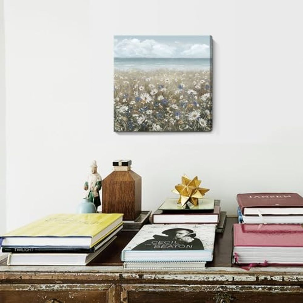 See it on AmazonBring Calm With a Coastal Boho Ocean and Flowers Print