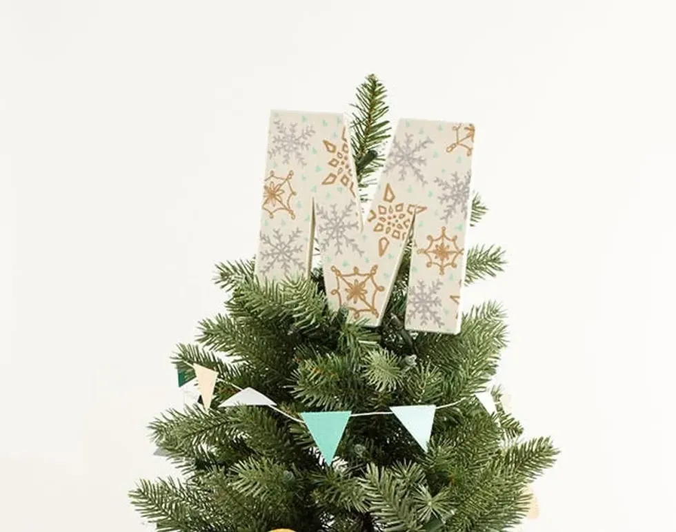 You know we can’t get enough of monograms and marquees, so we’re naturally obsessed with this tree topper. The candy cane stripes add some seriously festive flair. (via Brit + Co)