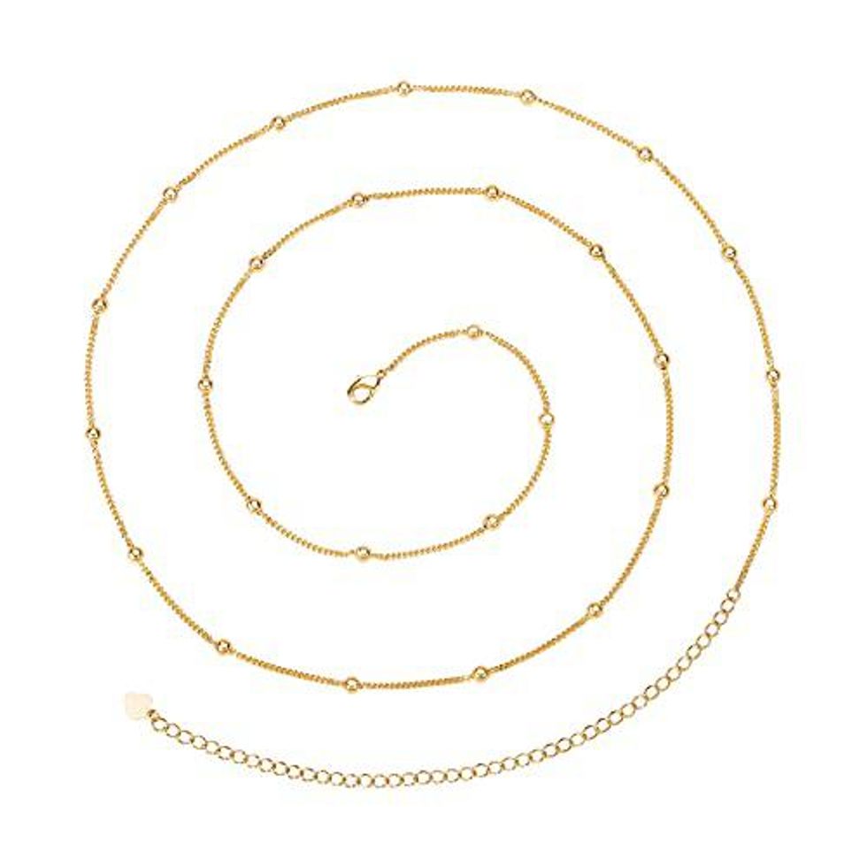 Perhaps because of the return of Carrie Bradshaw and SATC and that one time when she wore a belt on bare skin, but body chains are trending again in 2022. You can wear a belt as well, but I personally prefer the more elegant and subtle styling of the body chain. This adsjustable chain is gold plated and goes with your bikini suit as well as everyday wear.