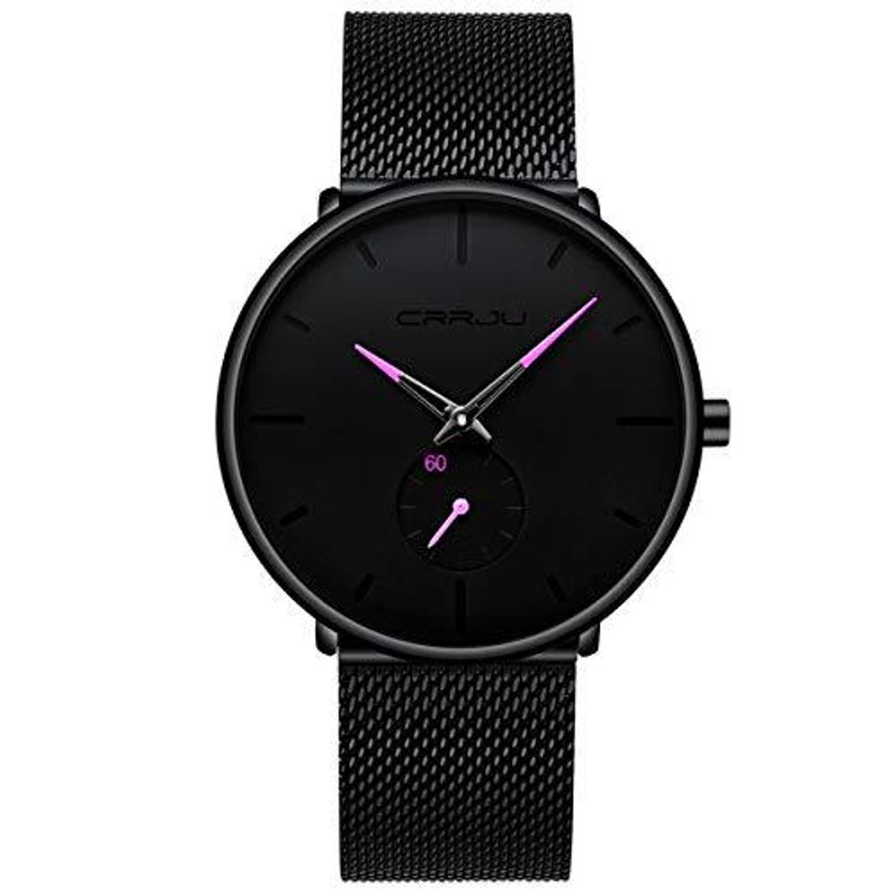 Anything that promises to render your iPhone unnecessary is very trendy, but this minimalistic black watch hits the spot. It is black, apart from it's from it's elegan purple arrows. Oh, hello again, purple. It is suitable for any occasion and also unisex.