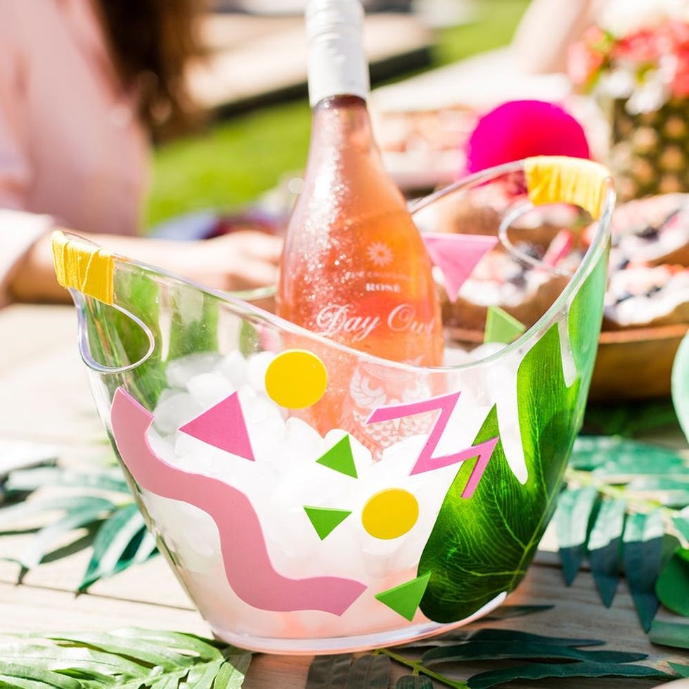 With summer coming in HOT, you can find us poolside sipping on something refreshing to beat the heat. And there’s nothing better to satisfy a sunny day than with an ice cold glass of rosé. (After all, it’s the top of the basic girl food pyramid.) That’s why we’ve teamed up with Day Owl Rosé to create a tropical DIY ice bucket filled with some serious summer vibes. It’s just what you need for your next outdoor brunch. So, sun-chasers, join us for the ultimate chill and scroll on!