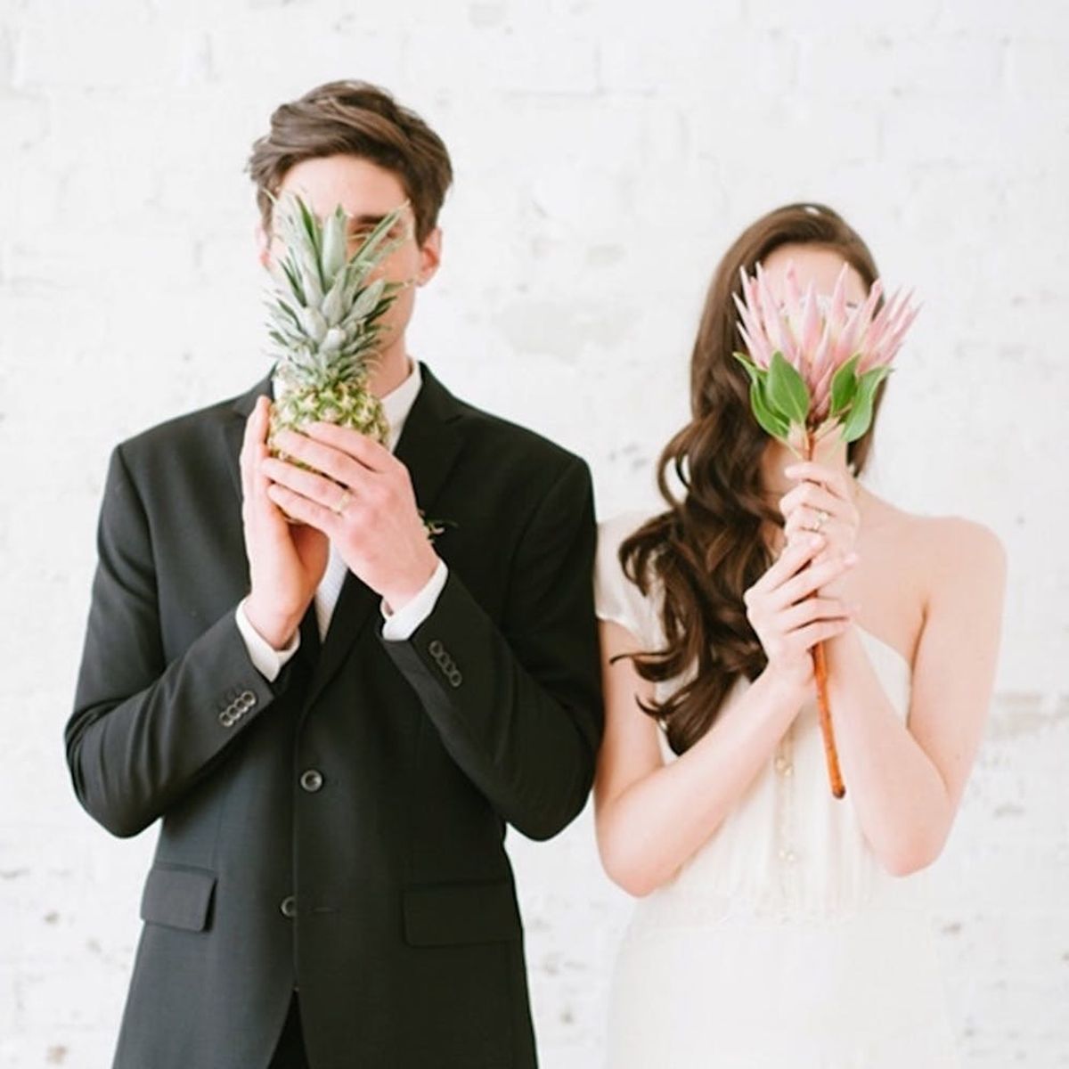12. Pineapple Vase Centerpieces: Can’t get enough of the pineapple-inspired look? Turn your favorite tropical fruit into a vase you can fill with flowers and use as a centerpiece. (via Mary Costa Photography)