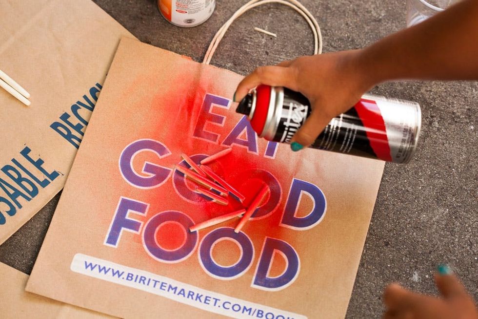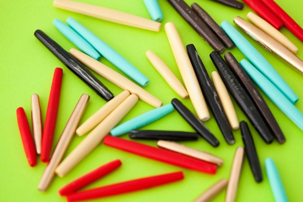 Head outside and spray paint those suckers! We went with red, black, dark brown, gold, light blue, and off-white.