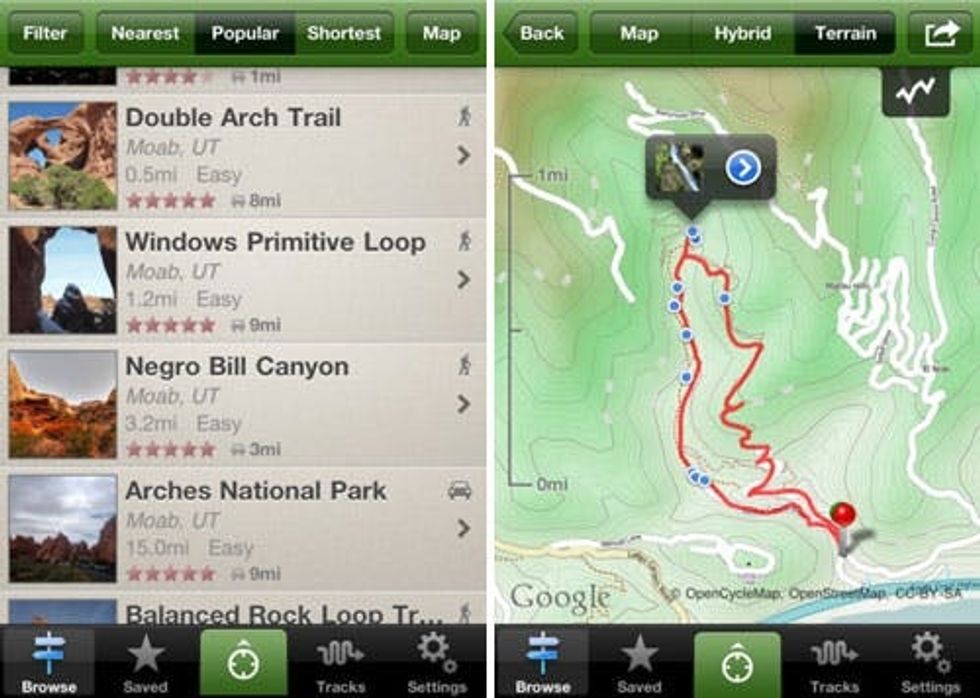 1. AllTrails (Free): AllTrails is our mobile and web go-to for finding nearby hiking and mountain biking trails. With over 40,000 high-quality trail guides, you're sure to find something fun to do no matter what city you're in. If you find a hike that's not on the app, track your hike using the AllTrails GPS tracker and add the trail for others to try out.