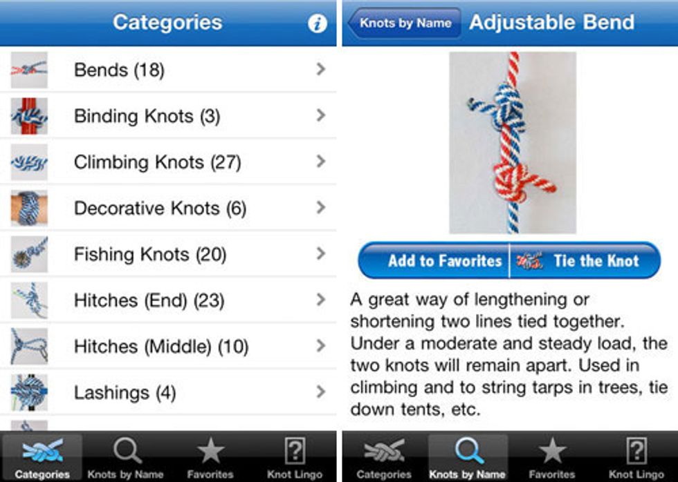 3. Knots ($1.99): Any avid sailor, camper or climber will tell you that knots are most definitely an outdoorsman's best friend. This app teaches you the steps for 101 knots and categorizes them based on when you might need them.