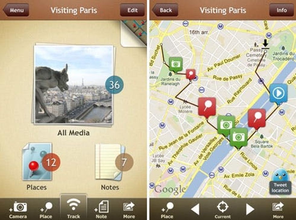 4. Trip Journal ($2.99): Exactly what it sounds like, Trip Journal is a way for you to jot down thoughts, helpful information, and add photos of your trip in a journalistic format. Think of it as a sweet combination of dropped pins, photos, notes, and directions.