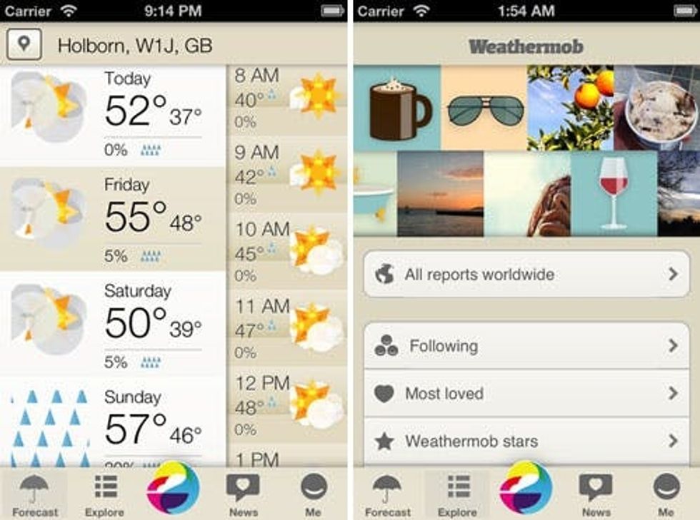 5. Weathermob (Free): There are about a million weather apps out there but this one happens to be beautiful and social, two characteristics that we absolutely love here at Brit & Co. It combines real time reports from people like us with official reports, and has a fun social networking aspect for folks that are really into talking about the weather.