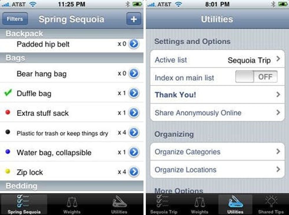 6. Backpacker Checklist ($0.99): This app helps you plan ahead based on what adventure you're embarking on. Simply create a list based on an upcoming trip, add things one by one (as well as scroll through suggested items), calculate how much your pack will weigh, and locate local spots for getting any gear you don't have. It's especially great for getting rid of unnecessary things that may be lingering in your pack.