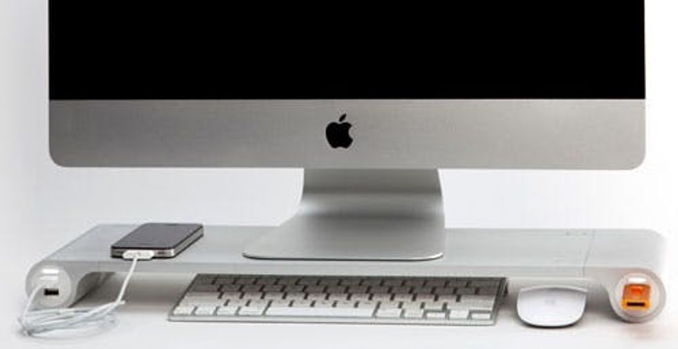 8. Space Bar Desk Organizer & Hub ($80): Now your cords are in place and perfectly organized every which way, but what about all the other odds and ends? The Space Bar creates a little nook of space right below your display, perfect for your mouse, keyboard, phone, and even an external hard drive. Plus, you get 6 USB ports, one mini-USB port and an AC adapter port! Solid.