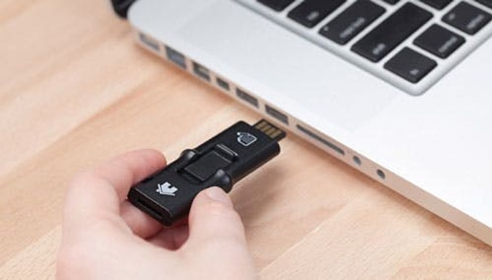 11. Split Stick Thumb Drive ($25): A simple thumb drive that keeps your home files and work files separate.