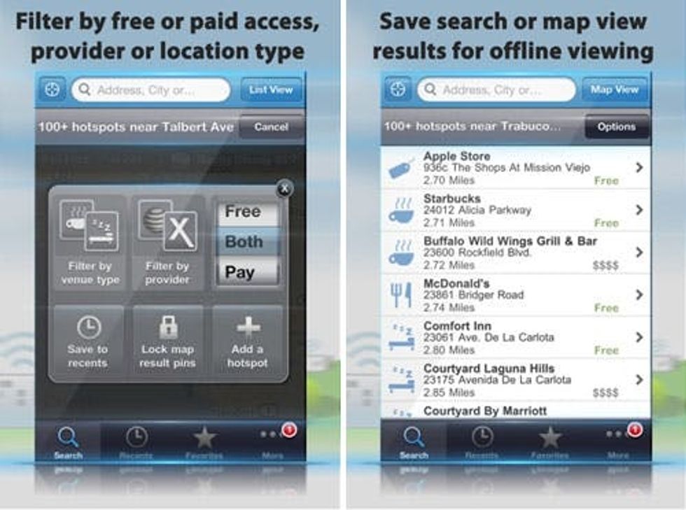 3. WiFi Finder (Free): You're in the middle of Arkansas and you desperately need to upload your latest batch of photographs. Use WiFi finder to locate free and paid WiFi hotspots in over 140 countries. Best of all, it works online and offline on the iPhone or iPod touch.