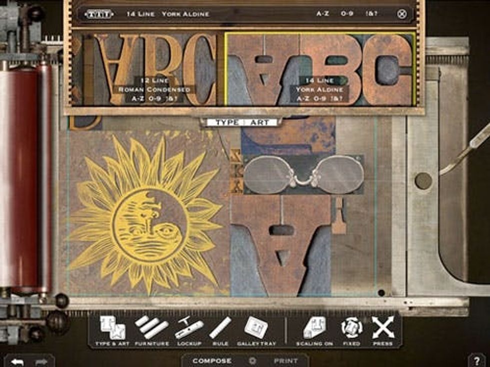3. LetterMPress: As a designer, it's crucial to familiarize yourself with the oldest forms of typesetting and publishing around. LetterMPress is an app that lets you virtually letterpress! You can place and arrange type, mix inks together to find a color that works for you, and even turn a digital hand crank to make a print. Plus, you can export your projects and actually have them printed! Love it.