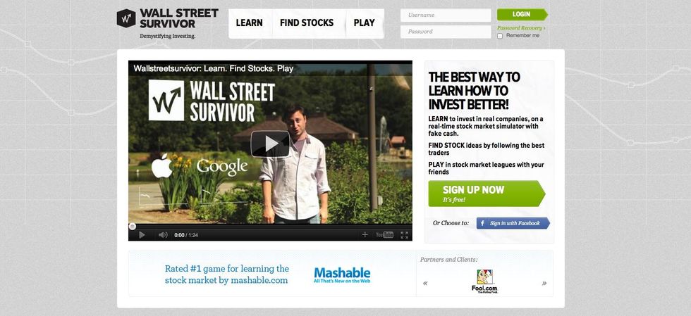 Clueless about the stock market? You're not alone. That's why the team at Wall Street Survivor has built a site that lets you invest fake money while using real stock market data to learn how to increase your stock returns in the real world. It's only in alpha right now, but the site plans to offer articles, videos, "missions" that you can choose to complete, and a community of wise investors that will answer your questions. Curious about our personal investments? We just bought a few shares of Martha Stewart stock, mixed with some LinkedIn, Amazon and Apple stock on the side. Yep, those sound about right for our portfolio.