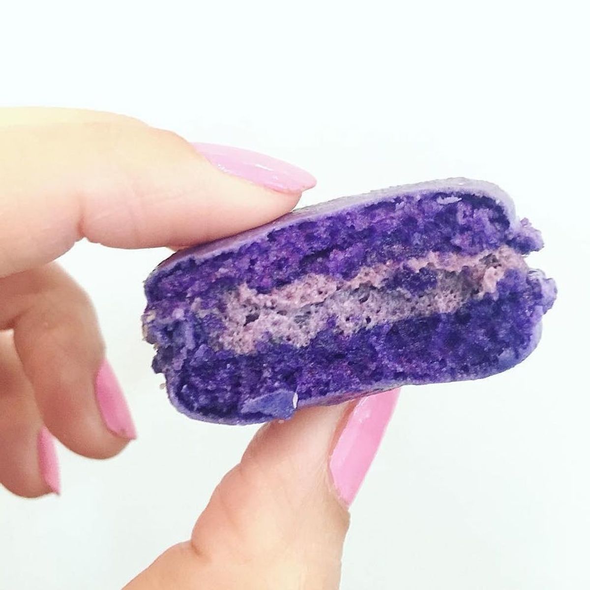 5. Macarons: These two-tone ube macarons are to die for — so sweet, dense and chewy! Coupled with that peony-pink mani, this whole tableau is utterly Insta-worthy.