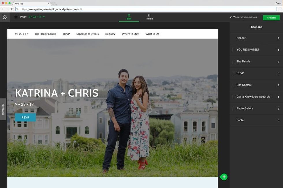 In our digital age, a wedding website is crucial for staying organized, sharing memories, and keeping your guests informed. To demonstrate the ease and diverse capabilities of GoCentral by GoDaddy, we helped a real-life, newly engaged couple build their website. Meet Katrina and Chris! They’re a fun, down-to-earth couple who love playing golf together and make you believe true love is possible. With these 12 tips, they were able to make their wedding website in no time. So, all of you happy couples out there, take note.