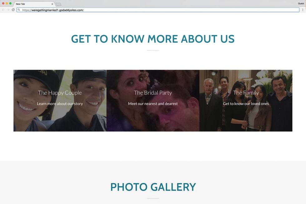 Congratulations! You got engaged… now what? Take a second or two to bask in the excitement of being a bride-to-be, because once you start planning, the real work begins. As a married person, I completely understand the joys and challenges of wedding planning. Oh yeah, it’s Lindsay here, Brit + Co’s Creative Content Producer. Planning your own wedding requires you to be a detail-oriented, expert event planner with ZERO experience. Even if you try to do a low-key, cost-effective wedding, things still add up (to a big, giant headache). That’s why we’ve partnered with GoDaddy to help you create a pain-free wedding website on a budget. GoDaddy’s GoCentral product has unlimited designs and tools that make it super quick and easy to build a wedding website. Besides, who needs another thing to worry about?