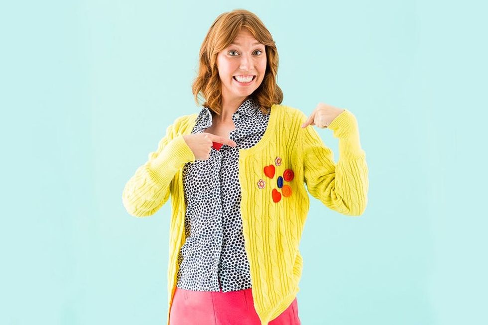 Kimmy is a true original, and so is her yellow cardigan! Find your favorite patches and buttons to mimic Kimmy’s style.
