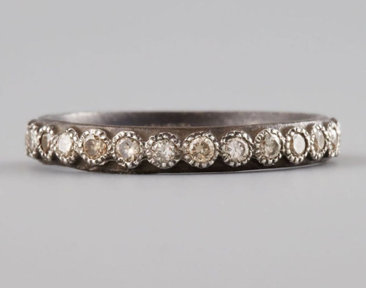 1. Armenta Diamond Band ($990): Our first gorgeous band is made of oxidized silver and covered with diamonds. The Armenta line is Spanish-inspired, with the idea of creating romantic jewelry with a rocker edge.