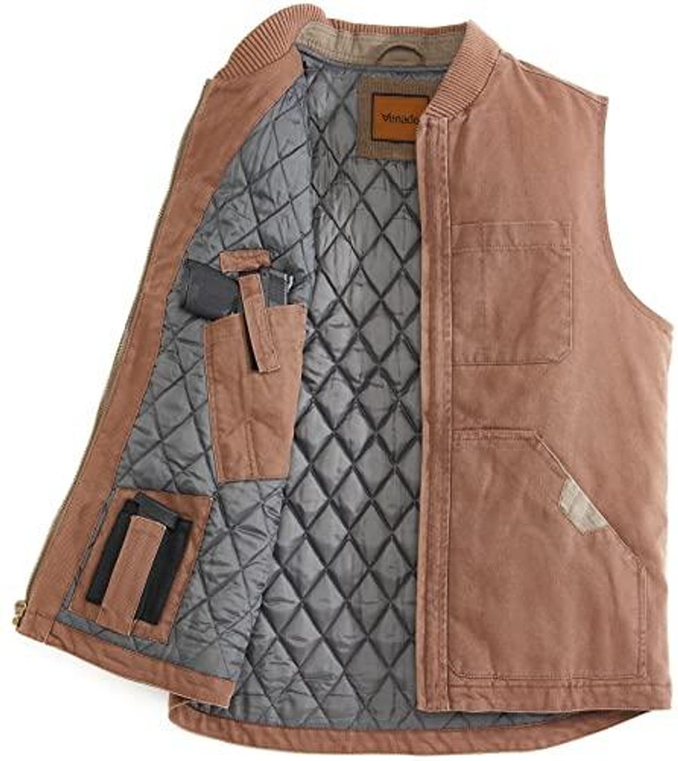 This sturdy Venado Concealed Carry Vest is made from durable canvas with insulated quilted lining. It is the ideal outwear piece for outdoor activity featuring two large pockets with snap closure with an interior concealed pocket ideal for left or right-handed people.